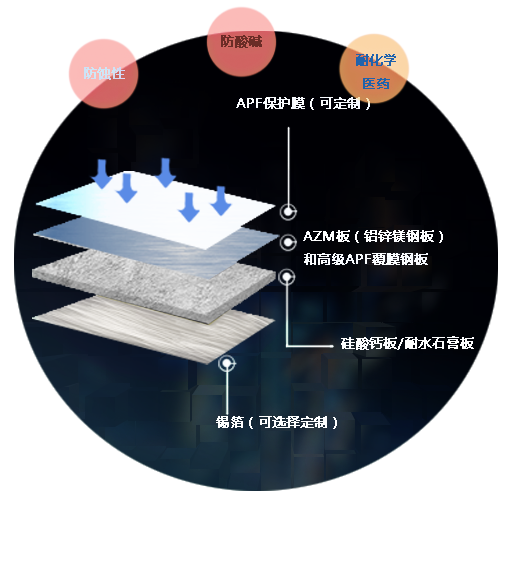 鋼板基材:高級APF覆膜鋼板、AZM板(鋁鋅鎂鋼板)
