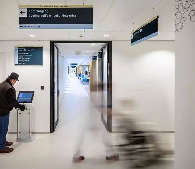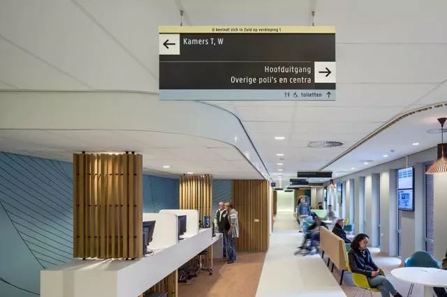 為了解決這個(gè)問題,Zaans Medisch Centrum設(shè)計(jì)團(tuán)隊(duì)從醫(yī)院入口到內(nèi)部,全程做好導(dǎo)視標(biāo)牌的點(diǎn)位布置。