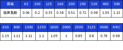 吸聲頻帶寬、低頻吸聲效果更佳;在100~5000HZ內平均吸聲系數0.84以上;降噪系數NRC達到0.98。